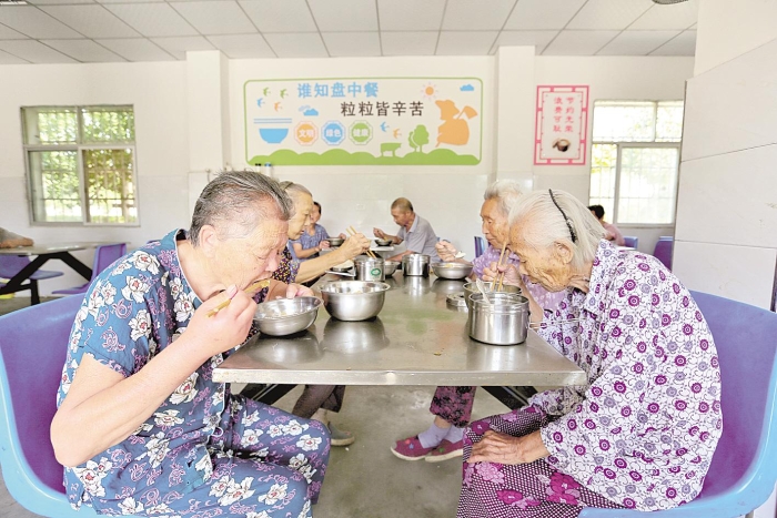 9月2日中午,湖北日报全媒记者现场看到,幸福食堂旁还有活动室,里面有棋牌和电视机等设备。食堂内,二三十位老人正在吃饭。83岁的老人盛景川告诉记者,儿子在外做生意,只有他一人在家。食堂每天的午餐都是三菜一汤,他非常满意。一旁95岁老人江翠华也接话说:“饭菜很合我们老年人胃口。”