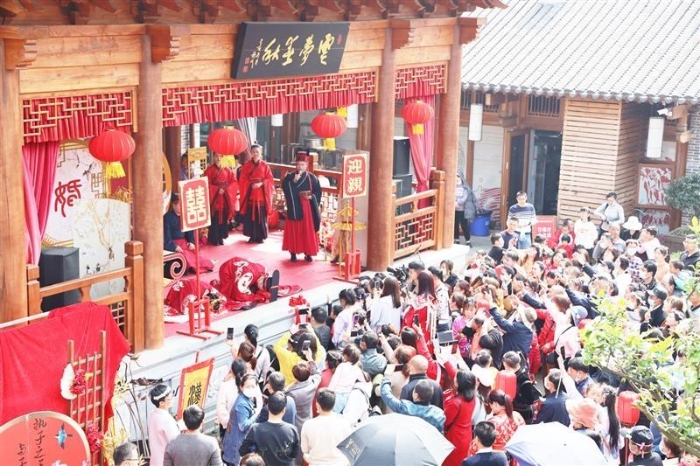 沔阳小镇首届花朝节的汉服婚俗大典活动现场。