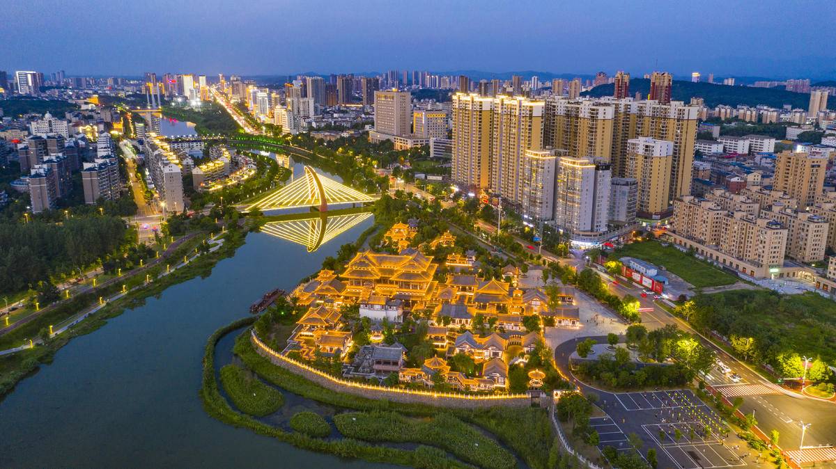 咸宁市区淦河两岸灯光璀璨,景色宜人。(湖北日报全媒记者 魏铼 摄)