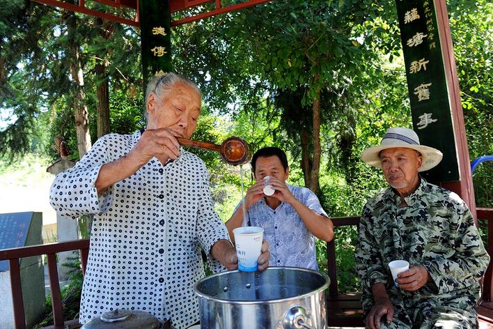 “凉茶奶奶”徐桂梅37年如一日给路人送茶,成为当地佳话。 (张大乐 摄)