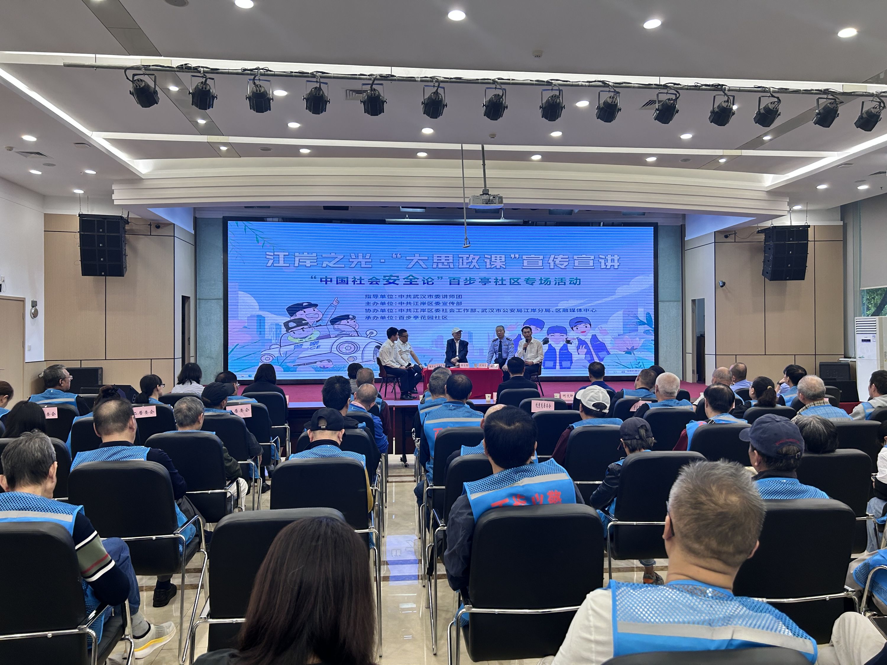 今日上午,江岸之光·“大思政课”宣传宣讲“中国社会安全论”专场走进百步亭社区。活动以圆桌沙龙形式开展,通过基层典型人物讲述、专家点评、居民互动等方式,生动展现江岸区平安建设的扎实成效,唱响社会安全“人人有责、人人参与”的主旋律。