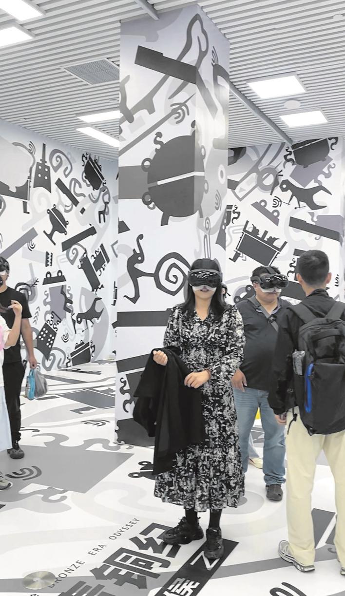 步入VR体验馆,戴上特制眼镜,游客便能瞬间“穿越”回三千年前的春秋战国。历史的尘埃被拂去,辉煌的曾国景象扑面而来:与曾国先祖南宫括一同立于朝堂,官员们山呼之声如在耳畔,其服饰上的精美花纹与细腻褶皱肉眼可辨;置身于战国宫廷盛宴,游客可“伸手”接过乐者递来的棒槌,敲响穿越千年的编钟音符;漫步于虚拟的编钟林中,青铜器上的夔龙纹饰与神秘铭文仿佛伸手可触。来自安徽的游客魏女士在体验后激动地表示:“太震撼了!每一个场景都像一部活生生的大片,不仅是沉浸式的体验和互动,更是一堂生动的历史课。”