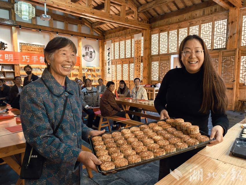 做好的月饼很快就烘焙好了,香甜的味道弥漫开来,大家围坐在一起,品尝着自己亲自动手制作的月饼,聊着家长里短,温馨的气氛洋溢在大家的笑脸上。“以前我们都是在超市买现成的月饼,今天吃到自己做的月饼,现做现吃,口感更好,也更有意义。”村民邵荣告诉记者。近四个多小时的活动,一直被笑声包围,最后,活动在大家激昂的歌声中结束。随后,驻村工作队上门逐户走访监测户,送去国庆、中秋节日祝福。