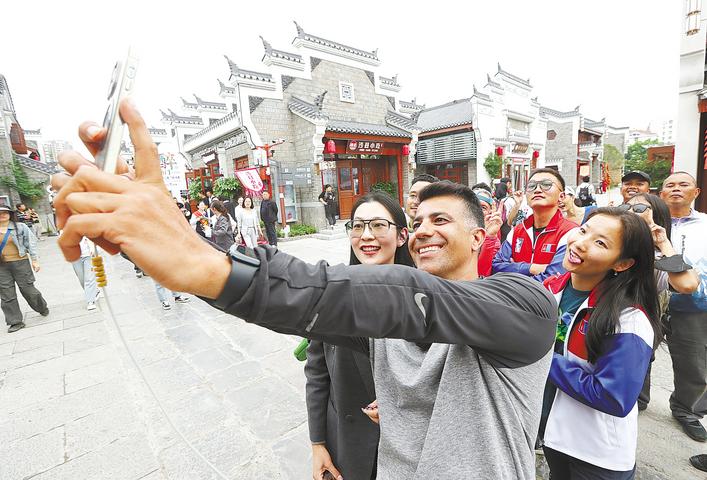 荆门市民主街迎来多批国内外游客。游客们穿梭于青砖黛瓦之间,感受楚风汉韵与市井烟火的独特交融。(湖北日报通讯员 赵平 摄)
