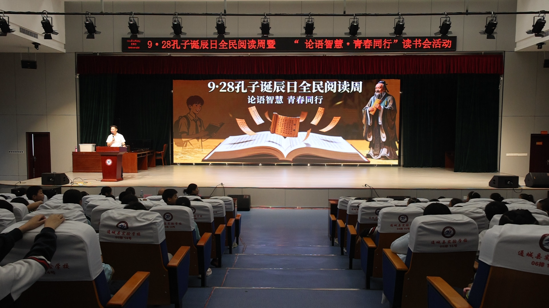 活动中,主持人向与会师生详细介绍了孔子诞辰的历史渊源及其深远的文化意义。一部精心制作的短片《孔子与论语》将大家的思绪带回了那个百家争鸣的时代。短片生动形象地讲述了孔子的生平事迹及其周游列国、传道授业的不凡历程,阐释了《论语》作为儒家经典的核心价值。