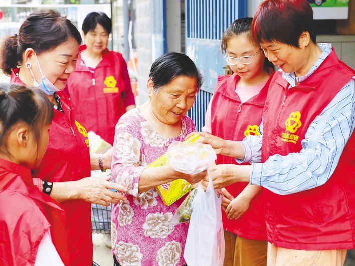 孝感高新区槐荫办事处在节日里组织志愿者为老人送爱心。(受访者供图)