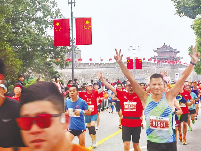 选手们沿着美丽的襄阳古城墙快乐奔跑。 (湖北日报全媒记者 刘孝军 摄)