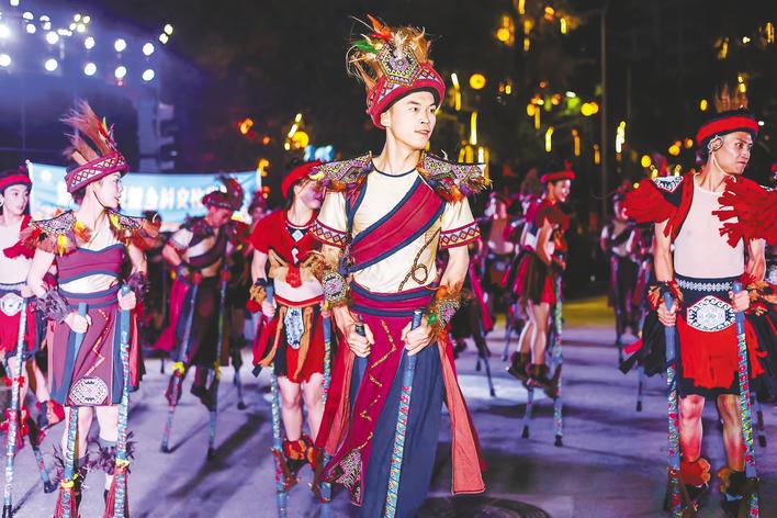 11月2日晚,第六届荆楚乡村文化旅游节在宣恩县开幕。来自省内各地的表演类非遗项目与民俗文化展演,呈现了一场地域特色与文化交融的民俗和民歌盛宴,给游客打造了行进式踩街巡游体验。(湖北日报全媒记者 王晶 通讯员 鄂文旅 陈明 摄)