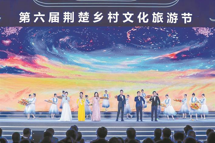 由“喜迎八方客”“湖北好风光”“荆彩汇知音”“丰收幸福歌”“荆楚共此时”等多个篇章组成的惠民文艺演出,生动展现了荆楚乡村文旅时代风貌和乡村文化振兴成果。