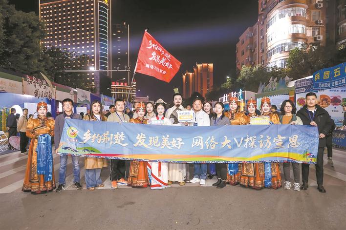 村游赶大集,一展观湖北。位于宣恩县人民广场的特色展示区,集中展示了湖北17个市州、新疆博州、新疆生产建设兵团第五师双河市、西藏山南等地最具特色的文旅资源,营造沉浸式文旅体验。
