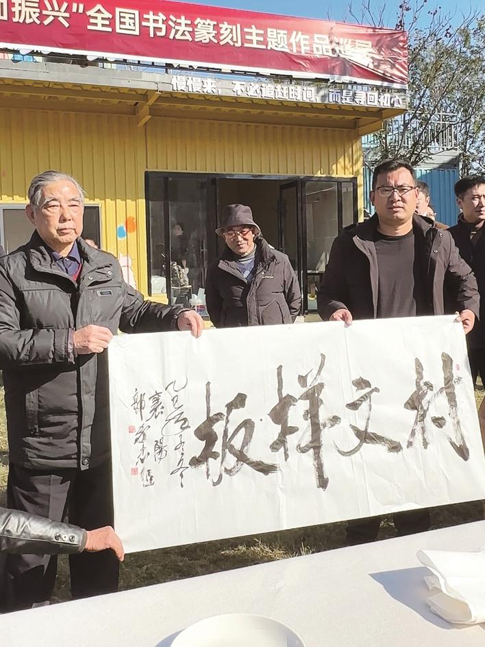 “村文样板”四个大字,落款盖章,赢得阵阵掌声。11月19日,襄阳襄州区峪山镇金寨村的书法活动现场,七旬老人郭家忠刚完成作品,就被前来“求字”的乡亲们围住。