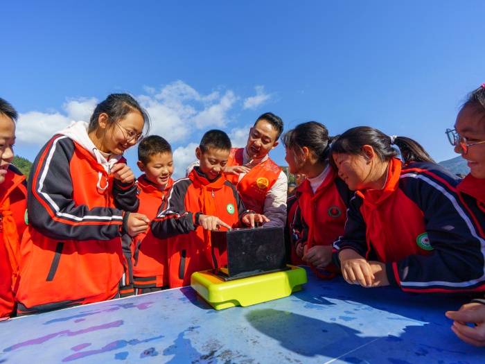 活动现场,秭归县科技服务文明实践队伍的志愿者为同学们带来了无人机负重表演、“探月归来”(高空扔鸡蛋)、混合物分离擂台赛等20余项科技体验项目。从操作无人机的严谨专注,到设计“护蛋装置”的协作创新,学生在动手实践中既感受科技魅力,更涵养“爱探索、敢尝试、善合作”的文明素养。教联体各校教师全程参与指导,引导学生在科技体验中践行文明行为、提升综合素养。