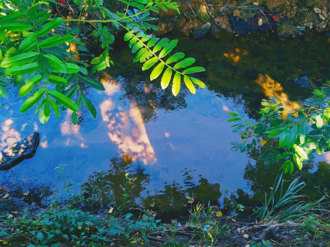 摄影课上,10岁的雷博凝视溪水中的阳光倒影,创作出将光影装进溪流的《静流》。他在日记里写道:“蹲在小溪旁,看树叶云朵倒映水中,小鱼偷偷穿梭,按下快门时,我也成了捕捉美的小能手。”