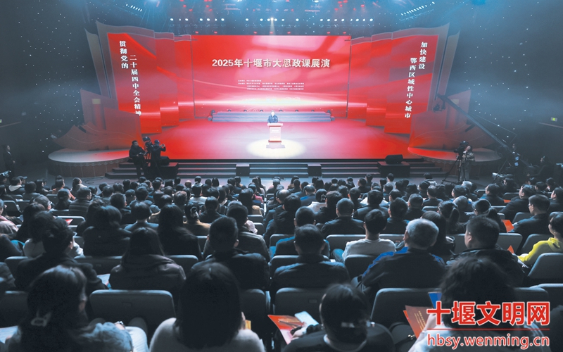 12月19日,2025年十堰市大思政课展演活动在十堰传媒中心演播厅举行。全市大中小学思政教师、企业及医院思政工作者、干部职工与先进典型代表齐聚一堂,共赴这场兼具思想深度与艺术温度的精神盛宴。活动以生动鲜活的形式推动思政教育走出课堂围墙、走进实践现场、融入城市血脉,让思政力量直抵人心,为十堰建设鄂西区域性中心城市筑牢坚如磐石的思想根基,注入澎湃奔涌的精神动能。