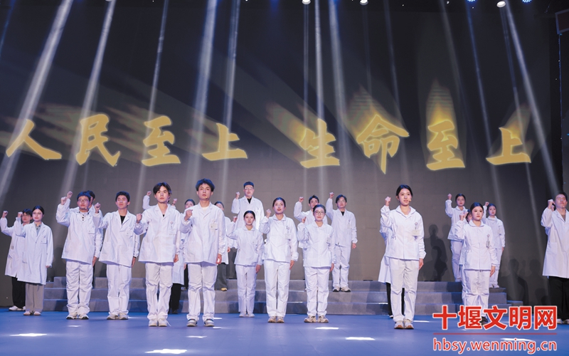 湖北医药学院的情景思政课《守护》带来直击心灵的感动,与“文明河流”的守护主题形成鲜明呼应。舞台上,白衣执甲的医务工作者逆行出征的身影,精准还原了抗疫期间“以生命赴使命”的感人瞬间,以“小故事”阐释“大道理”,让“人民至上、生命至上”的抗疫精神具象可感。