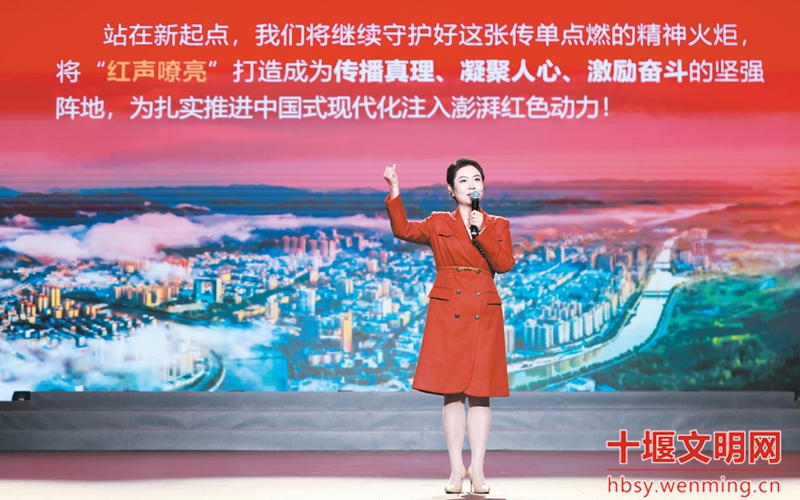 郧西县委宣传部的“红声嘹亮”思政课项目路演《红军传单的时代回响》接续登场。作为“湖北解放第一县”的红色名片,该节目以476字的《什么是红军》传单为切入点,通过“立体化、沉浸式”宣讲模式,让红色基因在新时代回响中赓续传承。现场观众仿佛穿越历史硝烟,真切触摸到信仰的滚烫力量。