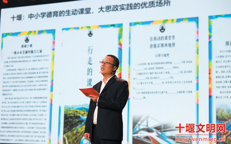 最后登场的市教育局《行走的课堂》思政课路演,为整场展演画上圆满句号。该节目以京堰协作为纽带,通过“研学专列+实地探访”的创新模式,展现北京学子走进十堰水源地、感悟大国工程的研学历程。当屏幕上出现1100余名北京学生探访南水北调中线工程的鲜活画面,“水润京华,缘起十堰”的深厚情谊令人动容,既呼应了“文明河流”的守护主题,更生动诠释了“思政课不仅在课堂上讲,更在社会生活中讲”的育人理念。