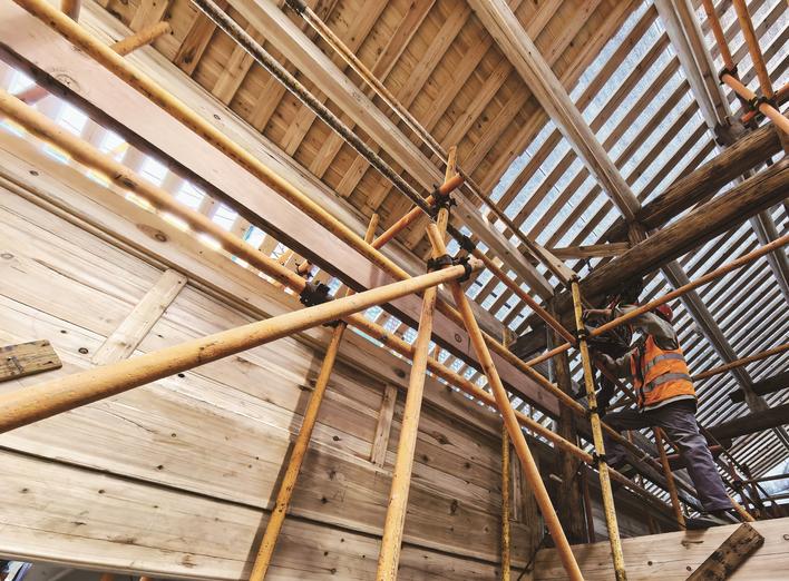 “‘拆’永远是最后选项,‘留’与‘改’才是激活老旧空间的核心密码。”城市更新投组建项目专班,安排规划设计、项目管理相关负责人每天驻守工地,从方案优化到施工建设,团队始终坚持修旧如旧、老物尽用,每一道工序都精益求精。在编号W15的阮祥泰旧居——一栋二进三院落的全木结构老宅里,工人们正紧张作业:虫蛀的立柱采用传统工艺加固,破损的木板壁替换为同等材质的老杉木,水泥地面复原成古朴的青砖……“这些木作构件无一钉一铆,全靠榫卯工艺拼接,尽显古人的匠心智慧。”专班成员刘阳帆介绍。
