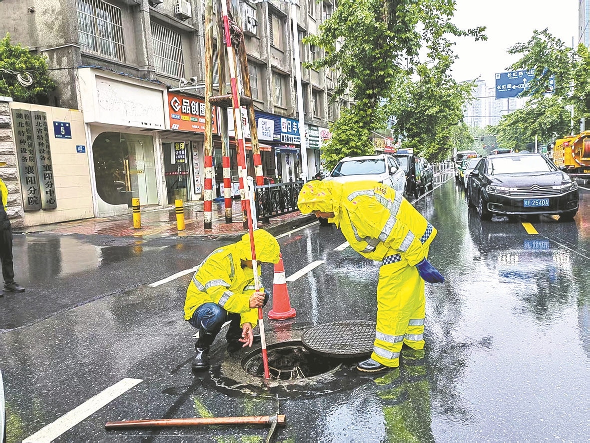 雨中排查管网。