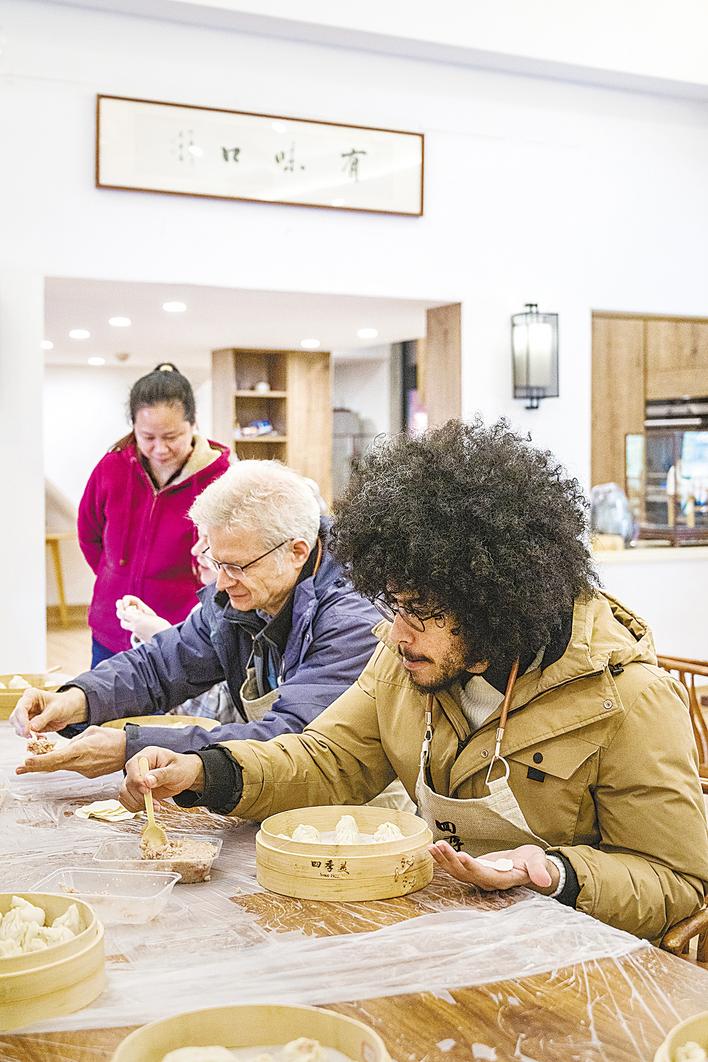活动首站来到拥有104年历史的武汉老字号“四季美”。四季美汤包技艺的第四代传承人肖喻康现场教学,外国专家们仔细观摩如何擀皮、包馅、捏出十八道褶。有外国专家尝试后笑称:“It's not easy!”也有人发挥创意,将汤包包成饺子形状,现场笑声不断。当热腾腾的汤包上桌,一口咬下汤汁四溢,大家纷纷感叹武汉小吃的匠心与智慧。