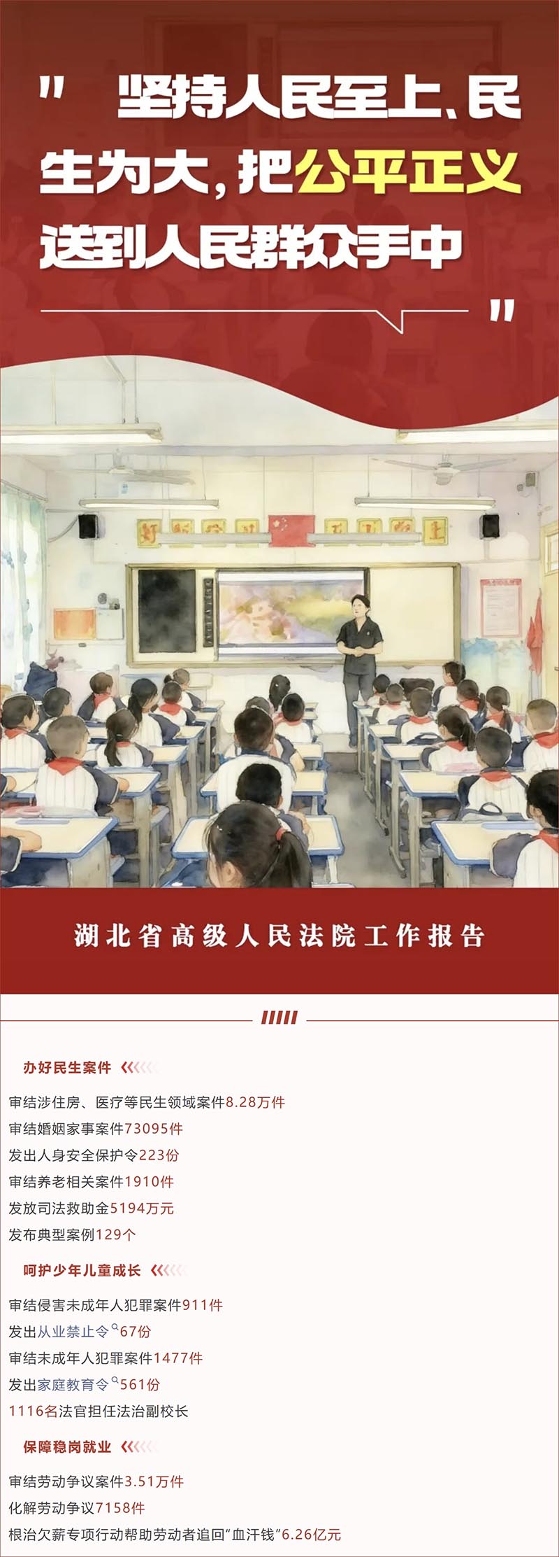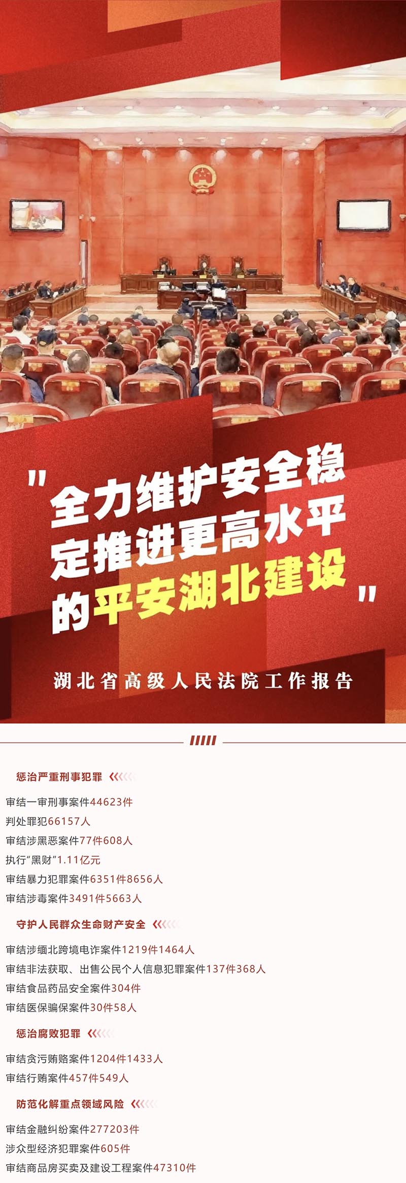 1月28日,湖北省高级人民法院党组书记、院长游劝荣在湖北省第十四届人民代表大会第四次会议上作法院工作报告。游劝荣从持之以恒优化法制化营商环境、全力维护安全稳定、坚定不移推进长江司法保护、坚持人民至上民生为大、推进法制湖北建设、坚持强基固本、全面从严管党治警、践行全过程人民民主等方面,对过去一年湖北法院工作进行全面回顾和总结。(连迅、李晓笛、李佩熹)
