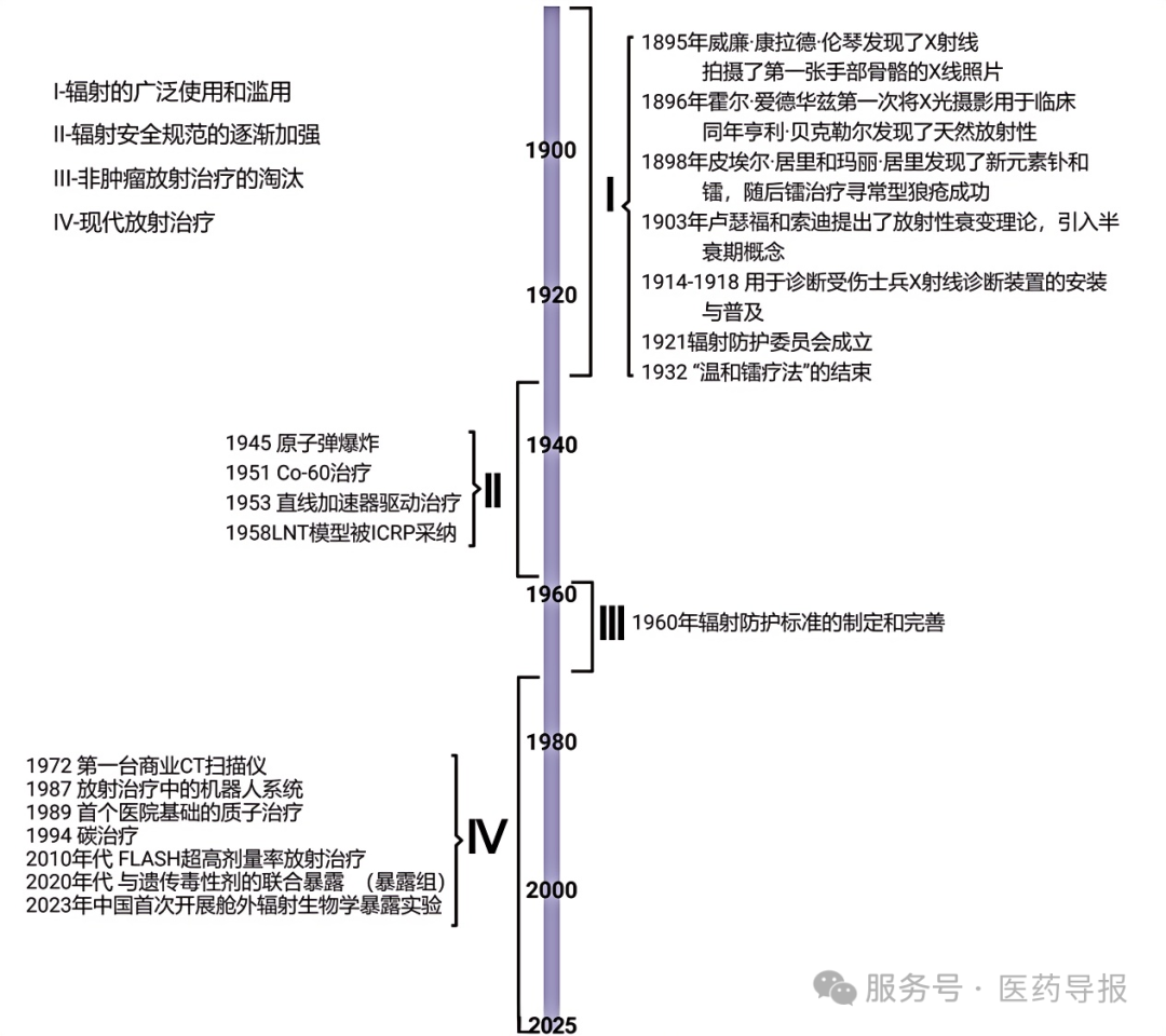 一个多世纪后的今天,核与辐射技术早已“渗透”到生活的方方面面。人类对核与辐射及其损伤的认识也历经了不同的发展阶段(图1),越来越深刻。