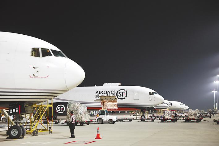 在这里,活鱼包裹享受“特殊待遇”:不走自动分拣系统,而是由专人交接、专道安检、快速进入空侧打板区。“所有活体货物在系统里都有标记,我们会提前安排接应。”晚班卸车区组长金磊说。
