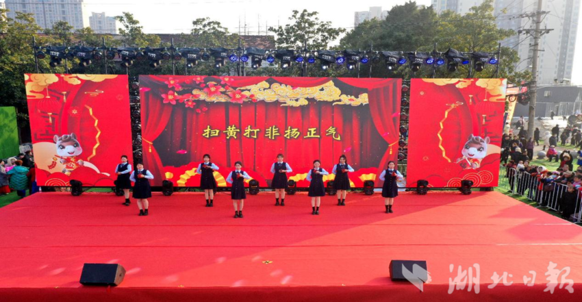 “竹板一打响连天,神州处处展欢颜”,集市现场,快板舞《“扫黄打非”扬正气》的精彩表演引得群众阵阵喝彩,这是应城市“服务+文化”双向发力的生动写照。