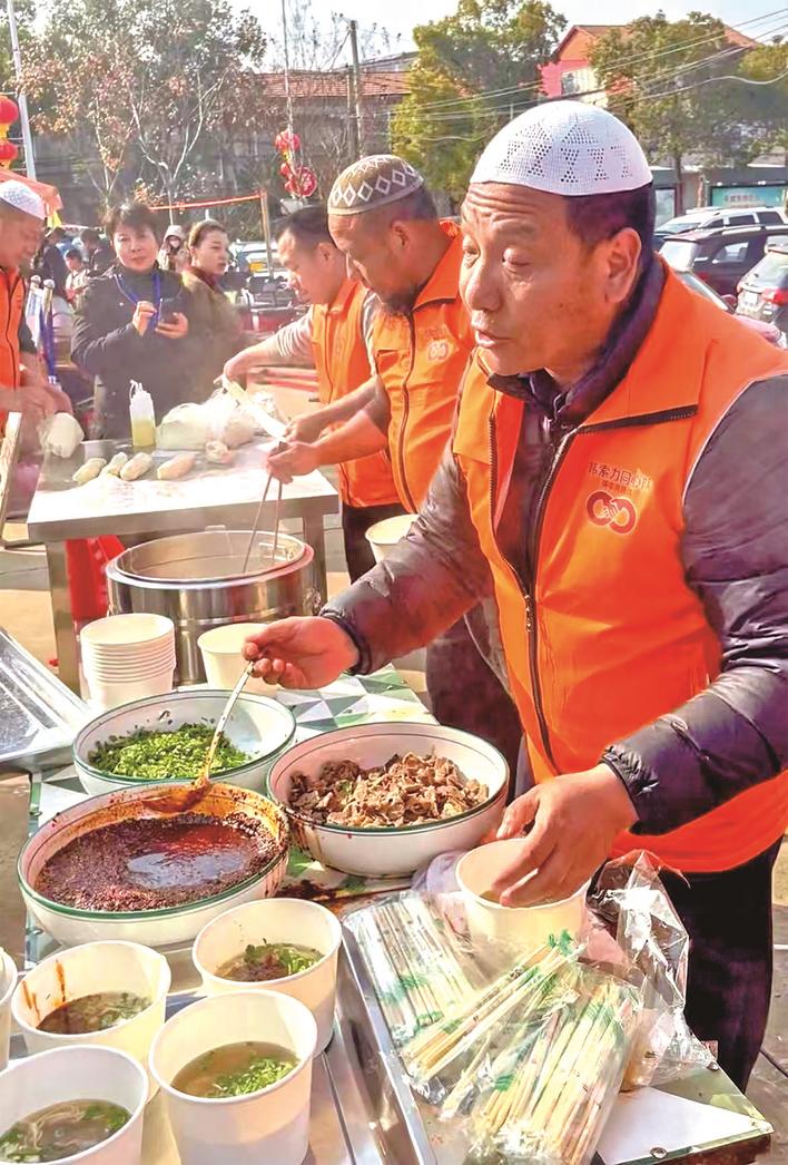 2月11日是南方小年,湖北省武汉市江夏区乌龙泉街道新建村文化广场人声鼎沸,“民族团结一家亲 拉面飘香暖小年”主题活动热闹启幕。千余名各族村民欢聚一堂,品青海手工拉面、领新春福联、参与民族知识问答,在烟火气与欢笑声中,共度别样小年。