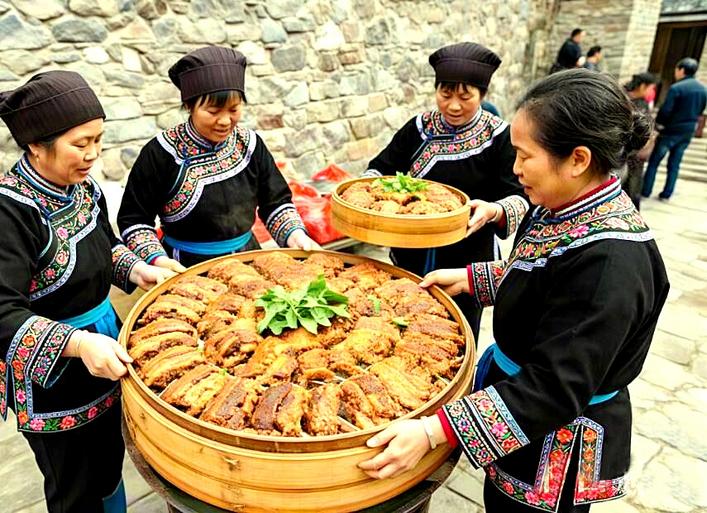 家家户户捧出自家酿造的苞谷酒、拐枣酒,为邻座斟满。席间不分你我,分享的是各家拿手菜,交流的是一年的收成、在外的见闻、孩子的学业。这种“分食”并非客套,而是根植于土家人骨子里的共享精神——饭要一起吃才香,事要一起扛才稳,这是最简单也最深刻的生活哲学。