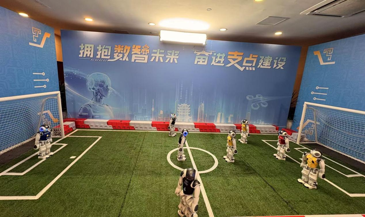 现场还有一群特别的“运动健将”——光谷盛创的NAO人形机器人。它全身拥有25个关节自由度,集成视、听、触多模态感知系统,能够精确感知周围环境和预知足球轨迹,提前做出踢球、拦截、扑球等动作。作为连续17届世界机器人足球赛的官方标准硬件平台,目前该机器人已有超过40000台在全球70多个国家的顶级科研院所及高校作为科研硬件平台使用,催生了超过10000篇顶级相关研究论文。目前,其生产、研发、销售及全球售后中心已陆续落户光谷,为湖北机器人产业再添一支“国际力量”。