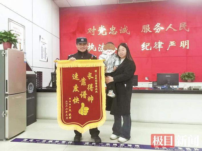 3月1日,一名5岁萌娃双手捧着特制锦旗,小跑冲进襄阳市公安局襄城区分局檀溪警务站,奶声奶气地向民警宗昌鹏道谢,将印有“长得帅、靠谱、速度快”的锦旗双手递出,简单直白的话语里,满是家属与孩子的真挚感激。