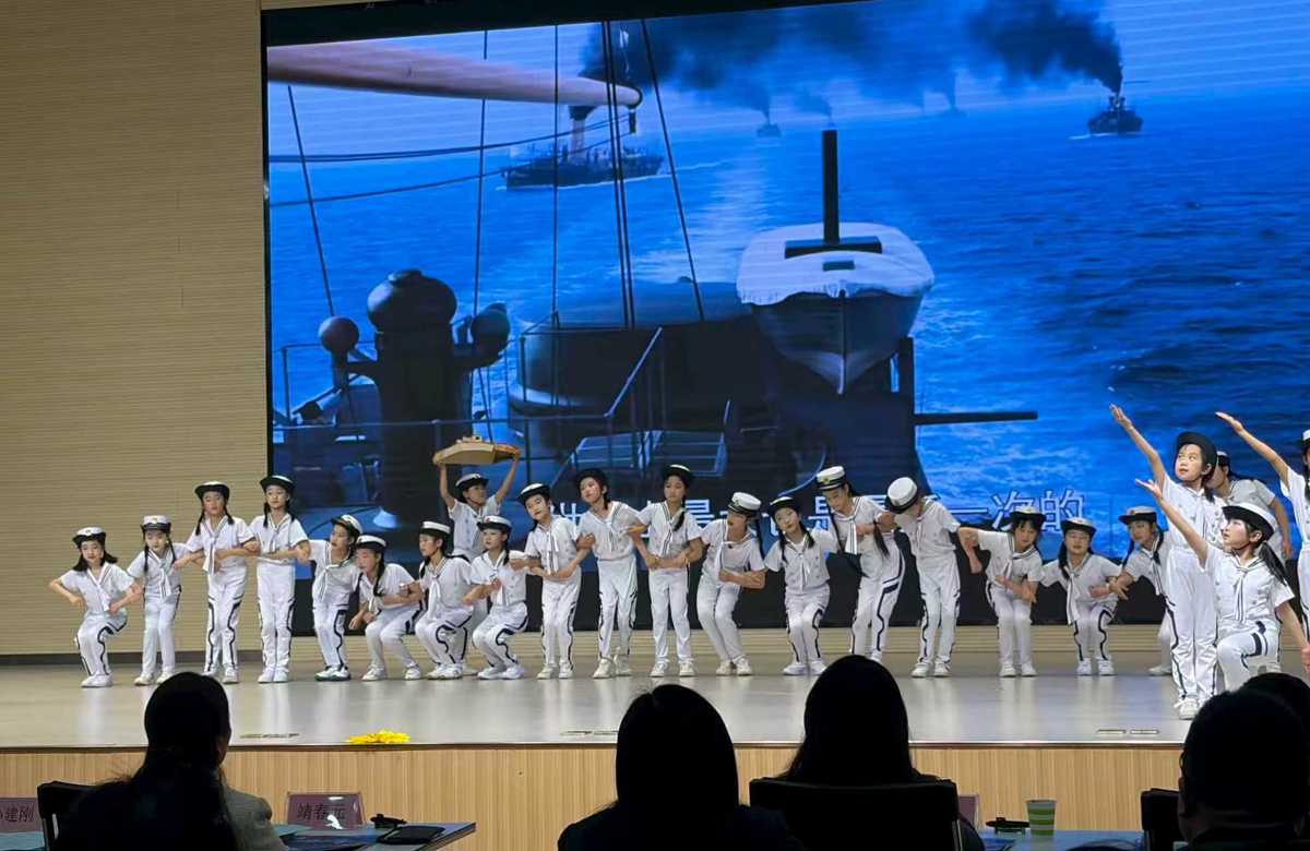 当天,以“致敬深潜元勋 点亮科技梦想”为主题的武昌区中山路小学科技月活动暨新学期科技教育工作部署会上,中山路小学的孩子们用身体模拟波浪、托举舰船前行,托举“舰船”破浪前行。从甲午海战的屈辱到福建舰的辉煌,一句“请党放心,强国有我”,让科学家精神跨越时空,直抵人心。