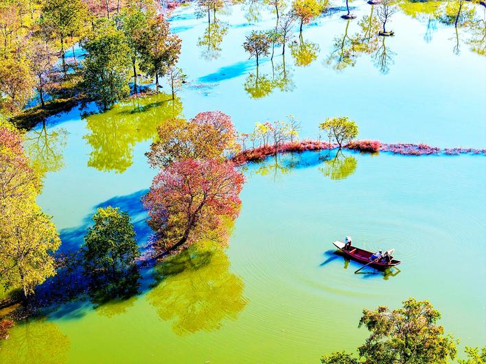 罗田县河西畈村水上红叶景区。(王江 摄)