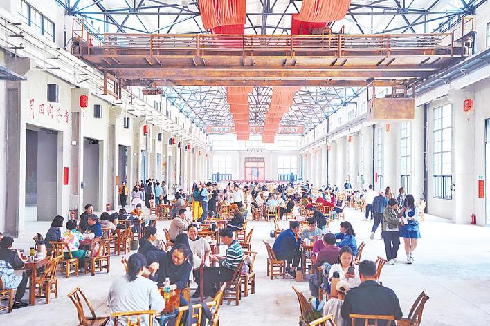 开业2个月以来,这间由老厂房改造的茶馆,已成为四美塘铁路遗址文化公园里最有人气的地方之一。