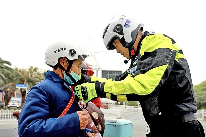曾怀庆在街头提醒戴头盔 通讯员供图