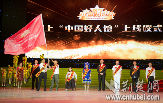 十位“中国好人”代表依次传递“中国好人榜”主题旗帜 通讯员胡鹏 摄