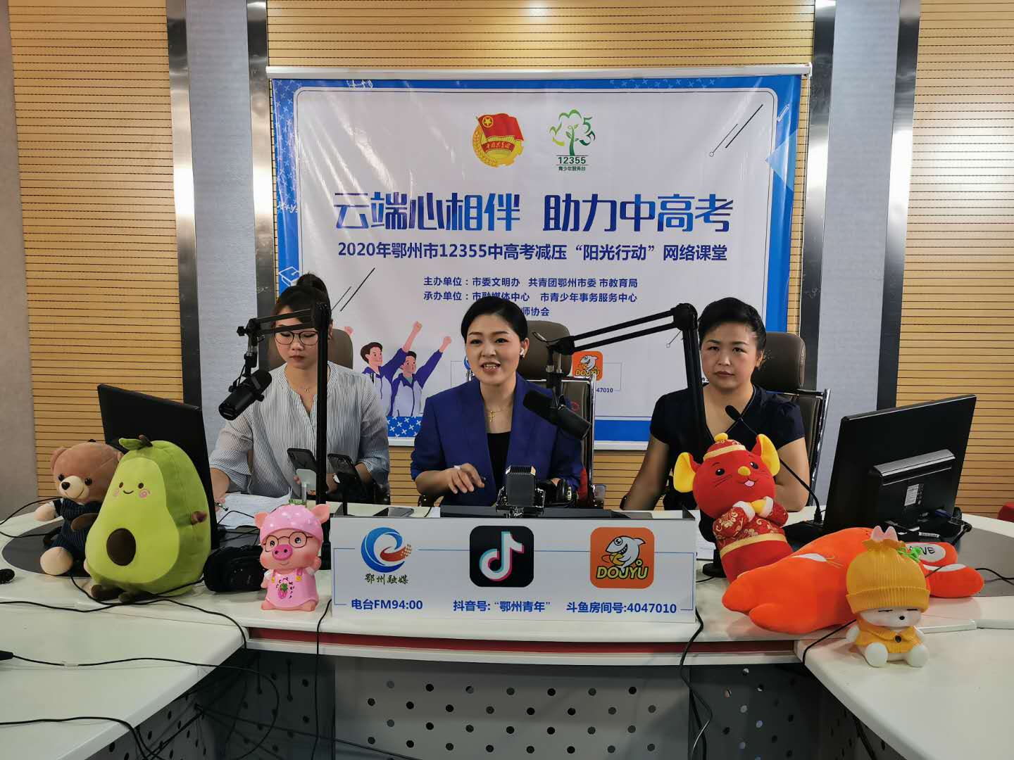6月份,市委文明办、共青团鄂州市委、市教育局联合开展2020年鄂州市12355中高考减压“阳光行动”。