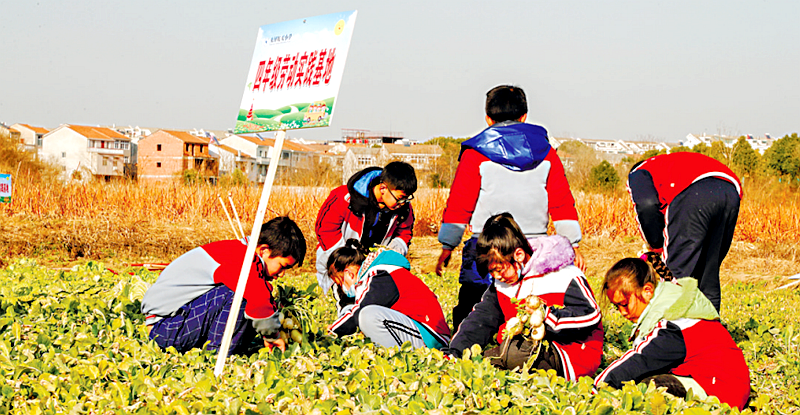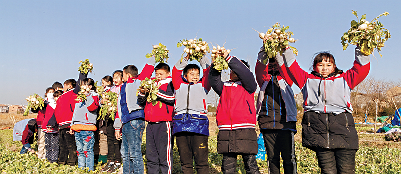 1月14日,武汉黄陂区天河街航天小学四(1)班的孩子们迎着阳光,手拿铁锹,兴致高昂地走出校门,前往学校劳动基地“上课”。在这里,到菜地劳作是学校每个孩子的必修课,春播秋种,寒来暑往,在四季变化中他们和庄稼共同成长,体验劳动的乐趣和丰收的喜悦。