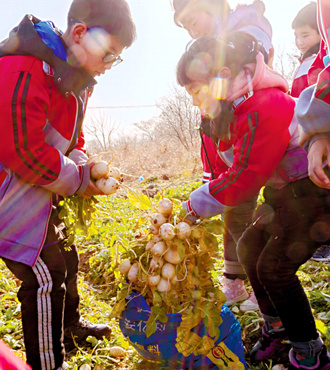 收获的萝卜将被送往学校食堂,送上孩子们的餐桌。图片来源:长江日报 通讯员王力军 摄