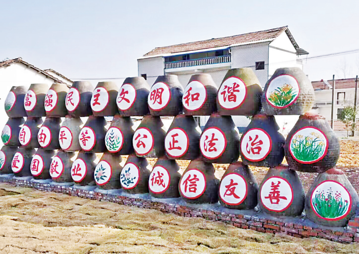 徐古街道许易村利用废弃瓦缸造成村中一景。
