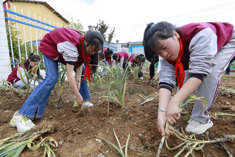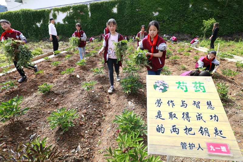 宝丰镇黄栗九年一贯制学校建成近900平方米的“校园农场”,作为学校劳动教育实践基地,定期组织学生分批次、分场地参与劳动实践,有主题、有任务、有记录、有总结,达到劳动养德、劳动促智、劳动益美、劳动强体的育人成效。(竹山县宝丰镇中心学校 朱本双 王营中)