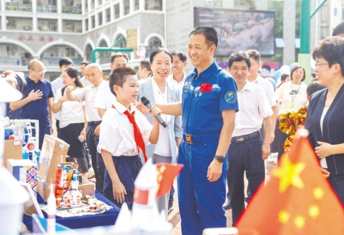 9月5日,英雄航天员聂海胜到黄石市广场路小学参加科普活动,与师生互动交流,播撒逐梦苍穹的梦想种子。(湖北日报全媒记者 薛婷 通讯员 石勇 摄)