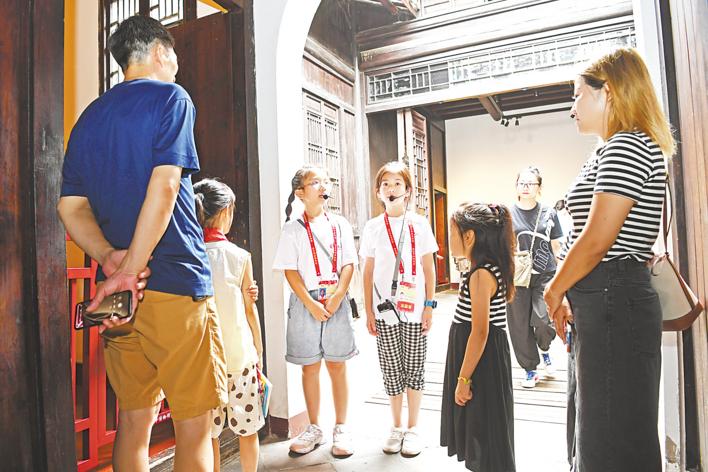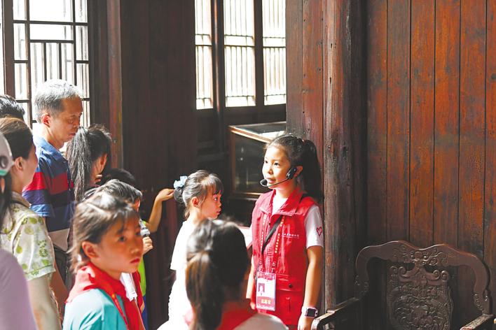 8月22日,毛泽东旧居纪念馆,来自光谷十小的“红巷苗苗”傅琬悦为游客讲解,目光中透出满满的自信。