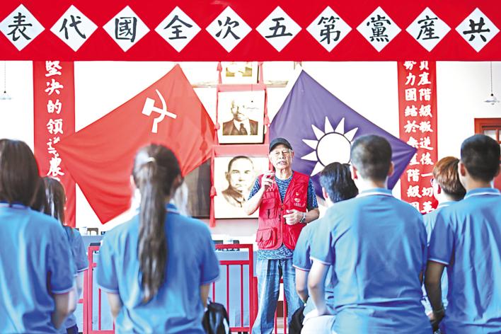 8月26日,中共五大会址纪念馆,“红巷爷爷”邓广东为一群大学生游客讲解。