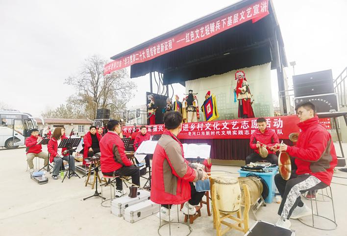 11月5日16时,老河口市孟楼镇余家沟村小广场上热闹非凡,一场戏曲进乡村活动正如火如荼举行。
