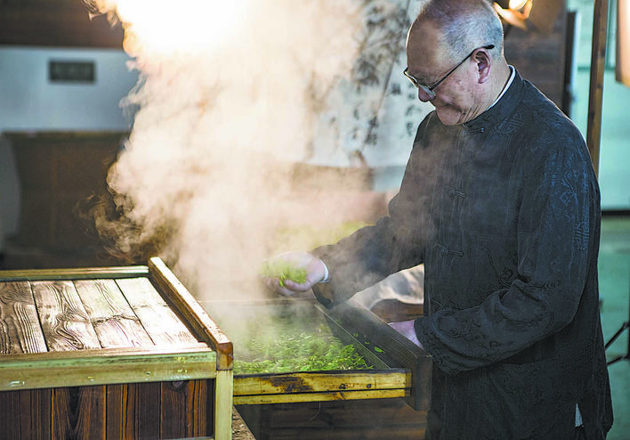 恩施玉露制作技艺国家级传承人杨胜伟在制茶。(资料图)