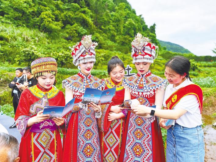 恩施市司法局在三岔镇“土豆花儿开”节现场向当地少数民族居民宣传宪法、民法典。