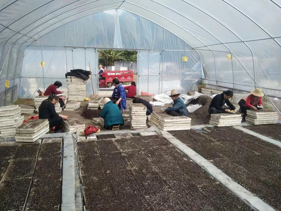 连日来,在崔家坝镇南里渡村,种植大户谢东升正在指导群众育苗。