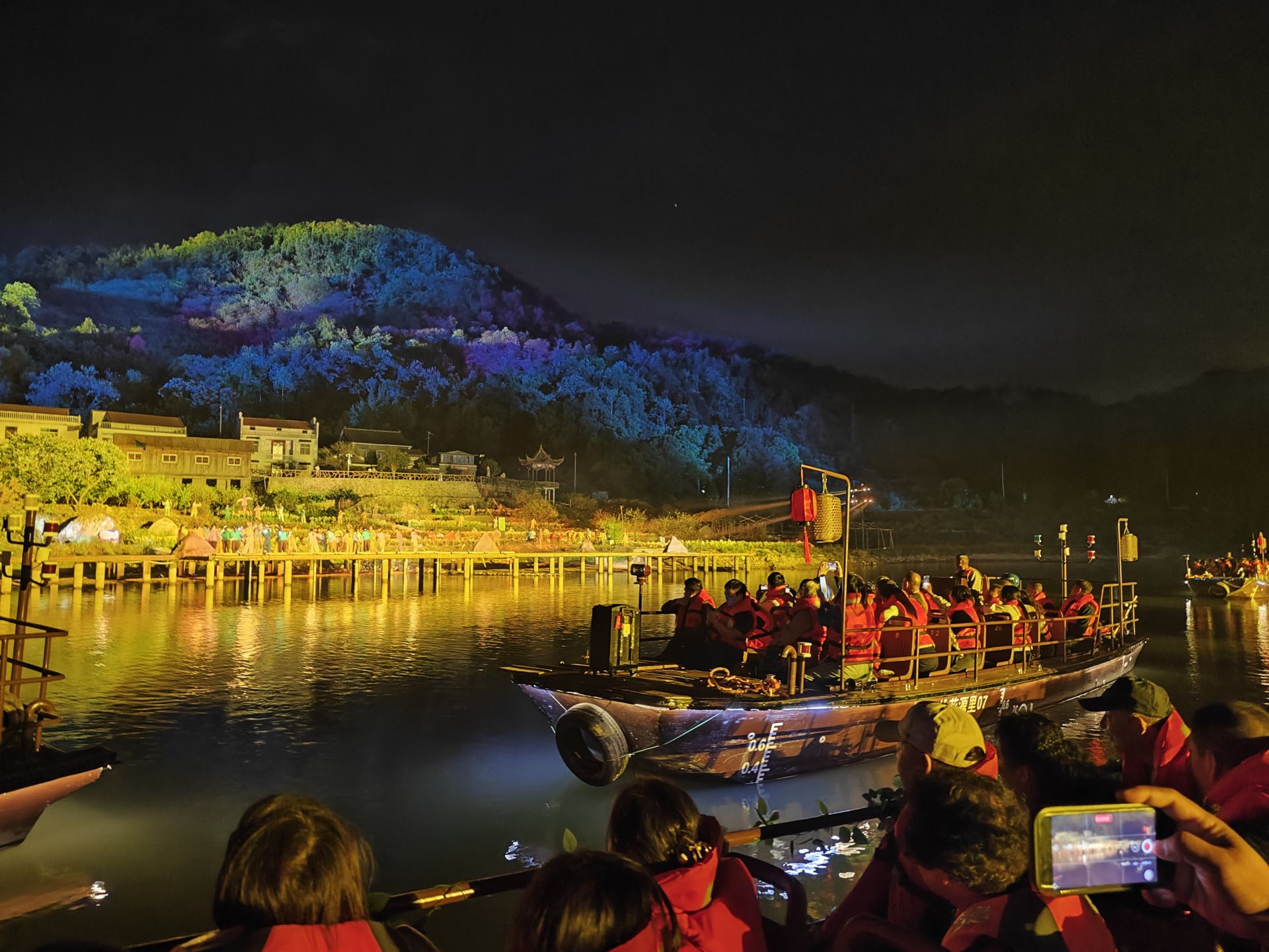 夜色撩人,保安镇沼山村又热闹起来。这里地处大冶市西北方位,周围是绵延的山峦、几千亩桃林和织锦般的田野。今年夏秋时节,沼山村的《桃花源里》大型沉浸式水上漫游演出每到晚上人潮涌动,热闹非凡,成为周边城市游客们的向往之地。